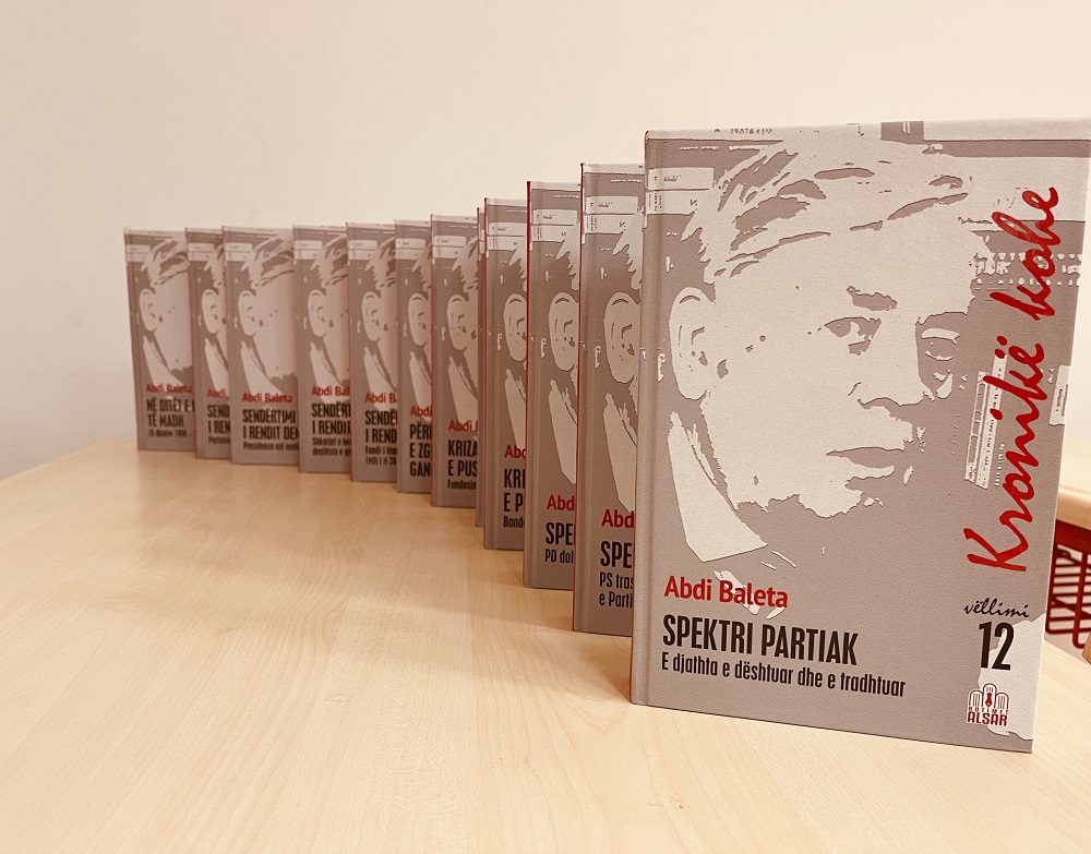 Fondacioni ALSAR ka nxjerrë nga shtypi 12 vëllimet e para të veprës prej 36 vëllimesh të Abdi Baletës – diplomat, politikan e publicist – e cila është titulluar “Kronikë kohe”.24 vëllimet e tjere janë duke u pergatitur dhe do të botohen të gjitha brenda këtij viti.Dymbëdhjetë vellimet e para mund të gjenden në librarinë e botimeve ‘ALSAR’.Se shpejti vëllimet e titulluara ‘Kronikë kohe’ të autorit Abdi Baleta do të jenë në Biblioteken Kombëtare të Shqipërisë dhe në biblioteka e librari...