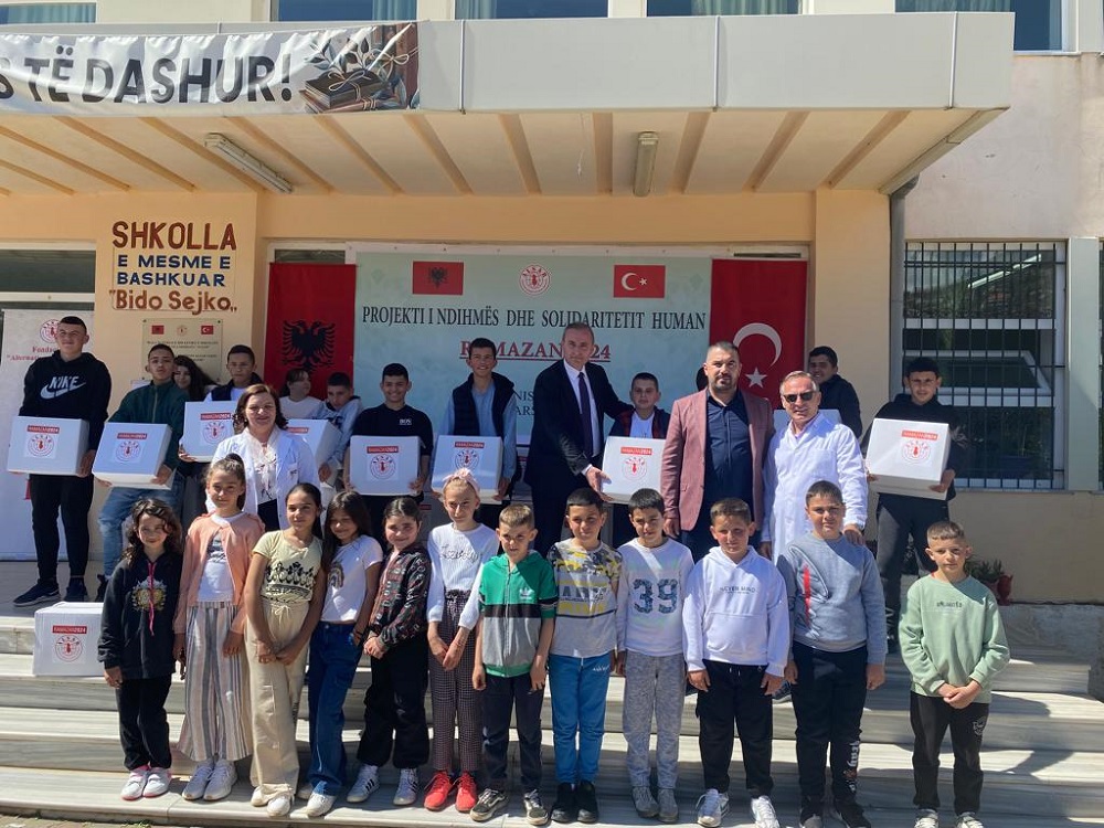 AprNë valën e aktiviteteve humanitare përgjatë muajit të Ramazanit, një i tillë u zhvillua sot, më 28 mars, në Konispol.Me një projekt në këtë kuadër, për ndihmë dhe solidaritet human në Ramazan, pako me ushqime janë shpërndarë në cepin jugor të Shqipërisë.Ndihma është dhënë për kopshtet e Konsipolit, në Shkollën e Mesme të Bashkuar “Bido Sejko”, për tërë nxënësit dhe stafin arsimor, dhe për familje në nevojë.Në veprimtarinë në mjediset e shkollës merrnin pjesë kryetari i Bashkisë së Konispolit, z....